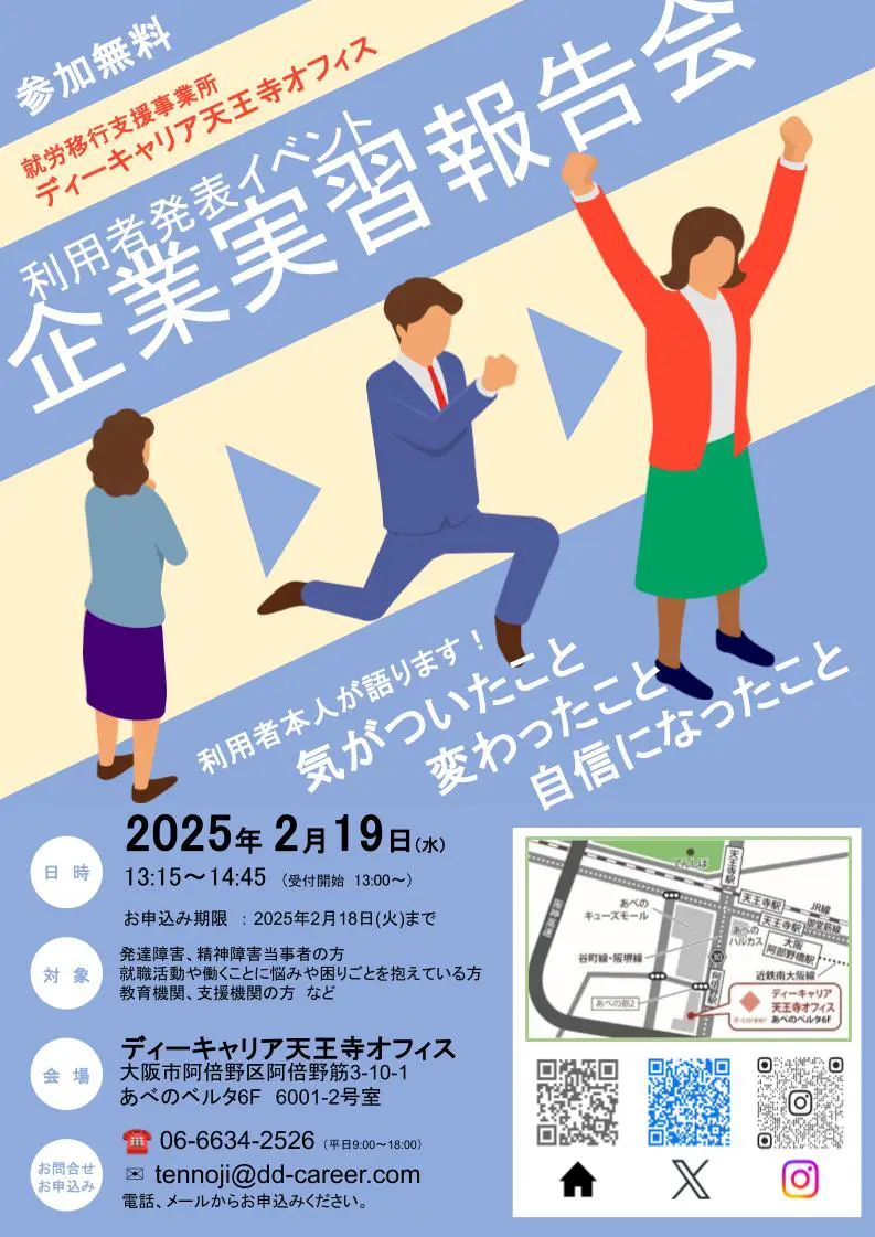 ディーキャリア天王寺オフィスでは、 2月に利用者が発表する企業実習報告会のイベントを開催します!