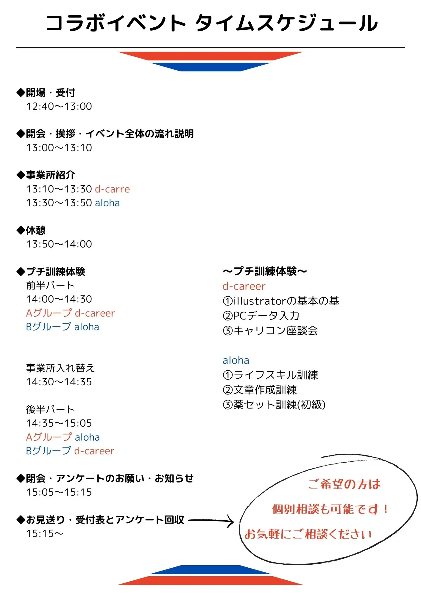 そんなお声にお応えし私たちの雰囲気や支援内容をプチ体験・見学できるイベントです。