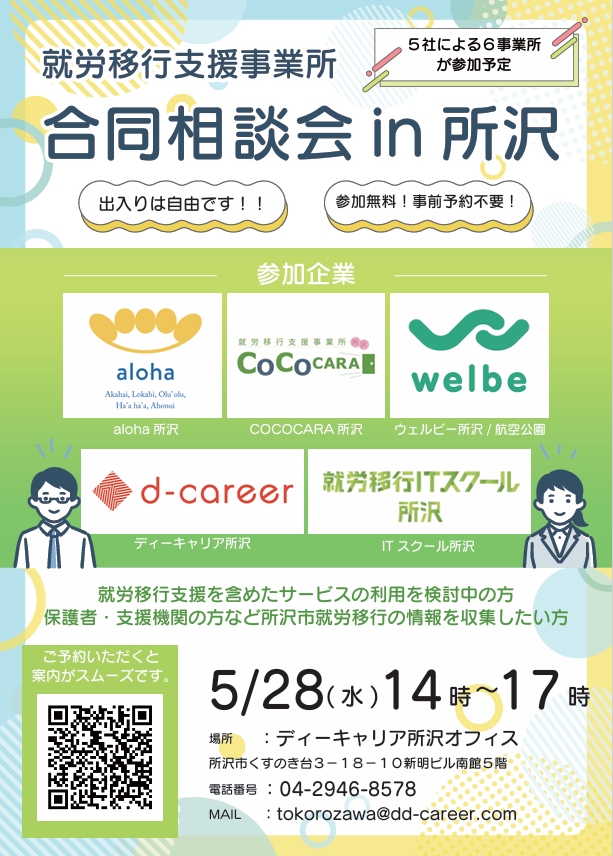 【ディーキャリア所沢オフィス】5月28日(水)「合同相談会 in 所沢」