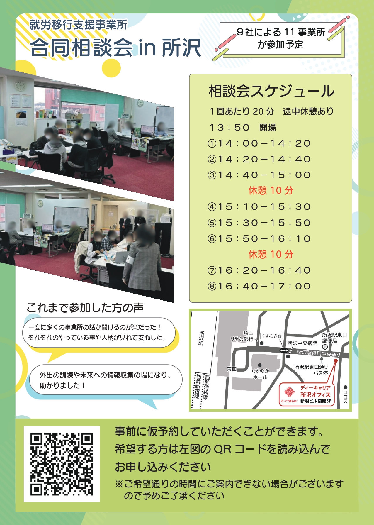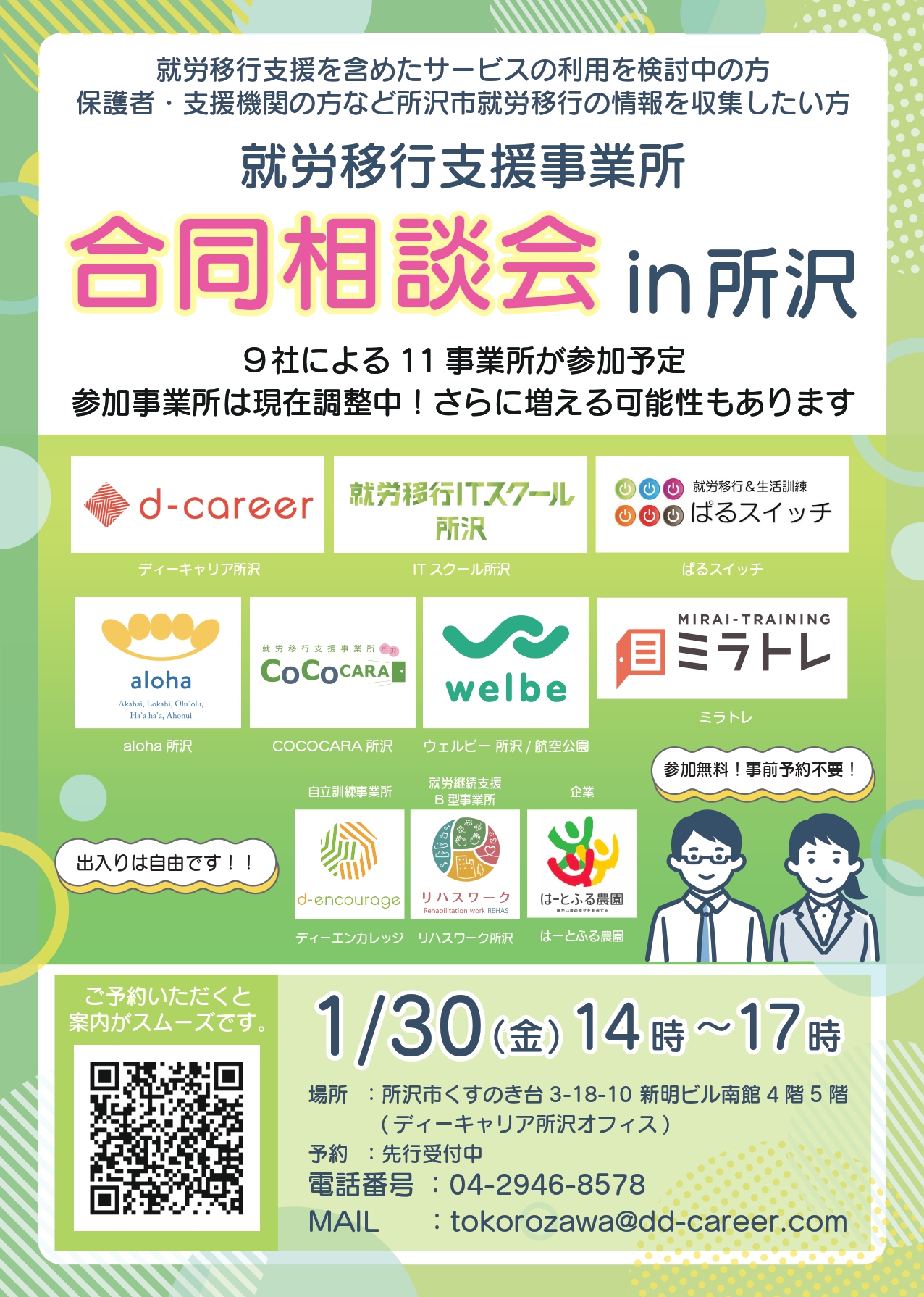 【ディーキャリア所沢オフィス】01月30日(金)「第4回!就労移行支援事業所 合同相談会in所沢」