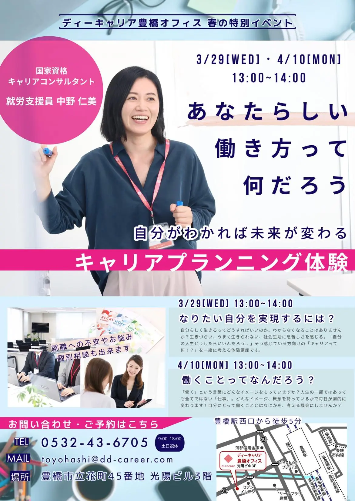 【ディーキャリア豊橋オフィス】3月29日(水)・4月10日(月)「自分がわかれば未来が変わる「キャリアプランニング体験」」