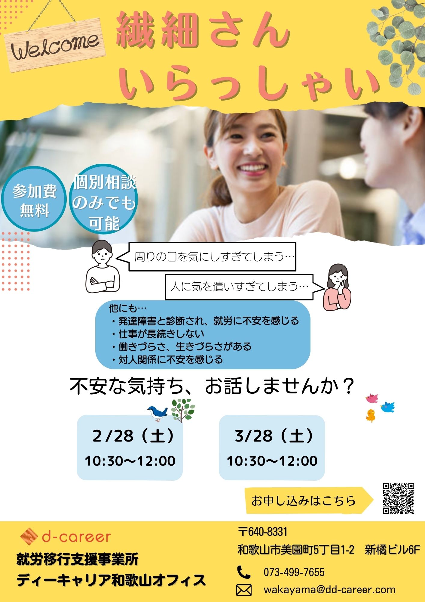 【ディーキャリア和歌山オフィス】02月28日(土)・03月28日(土)「繊細さんいらっしゃい」