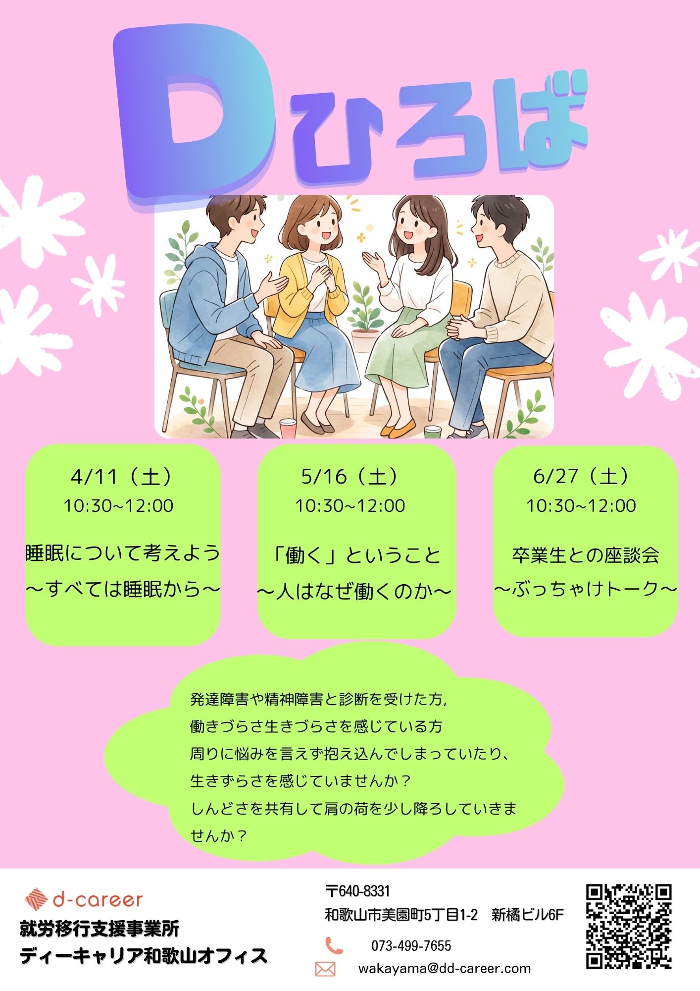 【ディーキャリア和歌山オフィス】04月11日(土)・05月16日(土)・06月27日(土)「Dひろば」