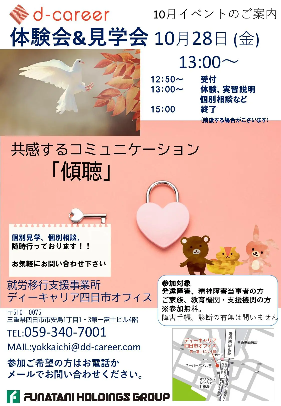 【ディーキャリア四日市オフィス】10月28日(金)・11月25日(金)「体験会&見学会」