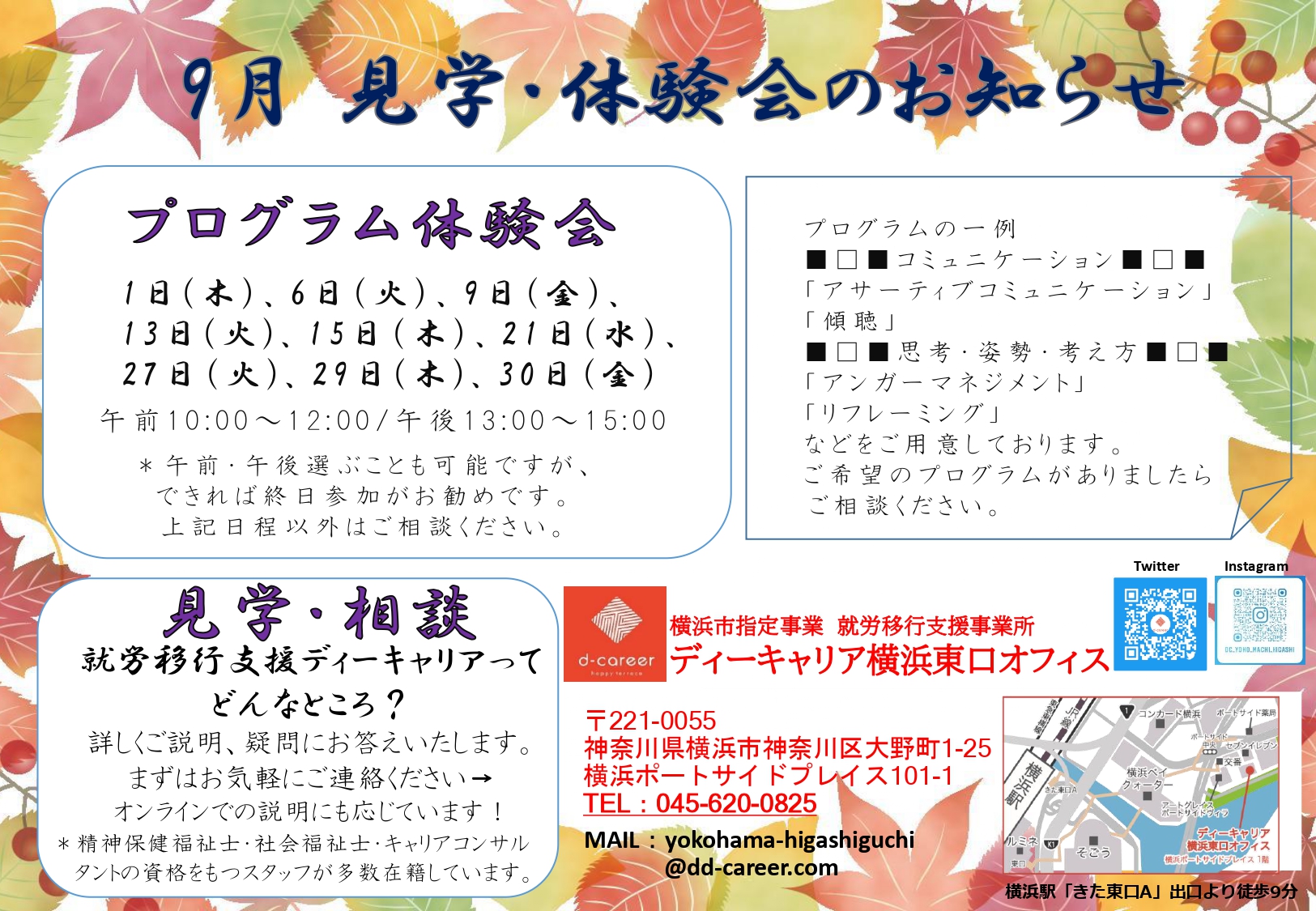【ディーキャリア横浜東口オフィス】9月6日(火)・15日(木)・21日(水)・30日(金)他「プログラム体験会のお知らせ」
