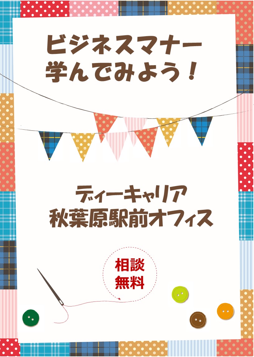 【ディーキャリア秋葉原駅前オフィス】毎週火曜日開催「ビジネスマナー学んでみよう!」