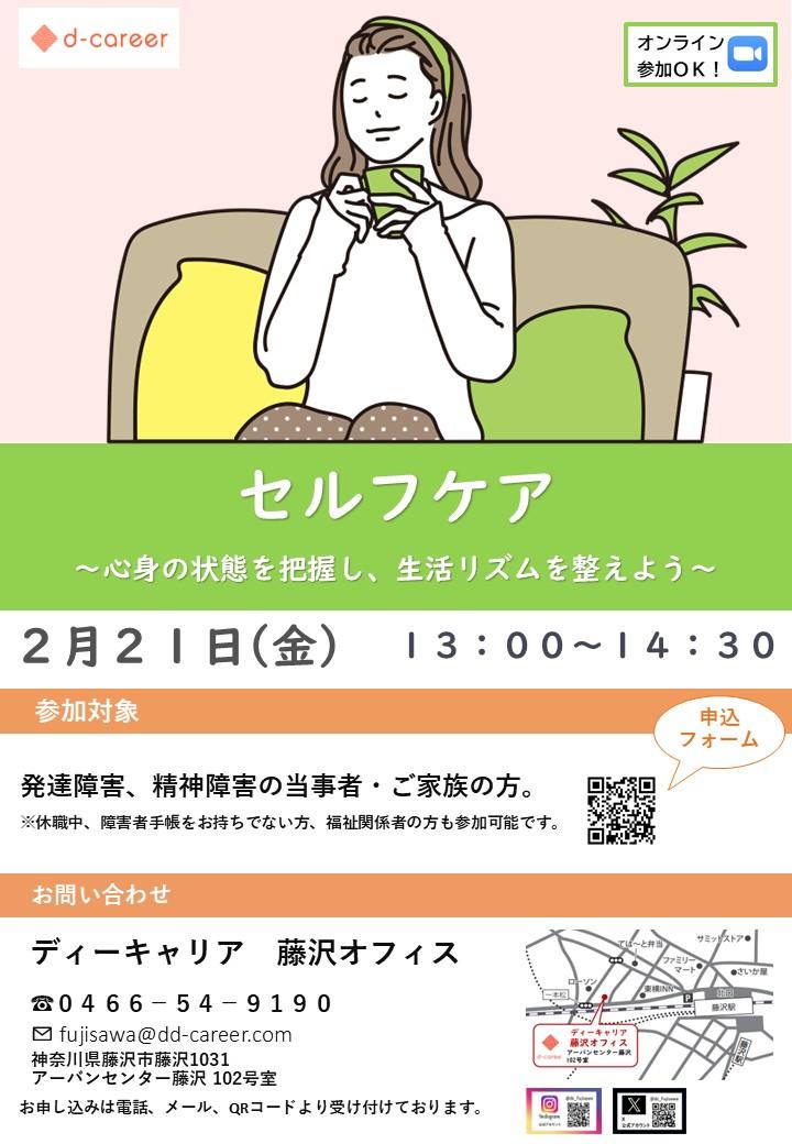 【ディーキャリア藤沢オフィス】2月21日(金)「体調変化の傾向を把握し、自身に合った回復プランを身につける⭐セルフケア無料プログラム体験会」