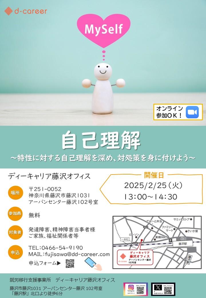 【ディーキャリア藤沢オフィス】2月25日(火)「自己理解の重要性と障害特性について理解を深めよう⭐無料プログラム体験会」