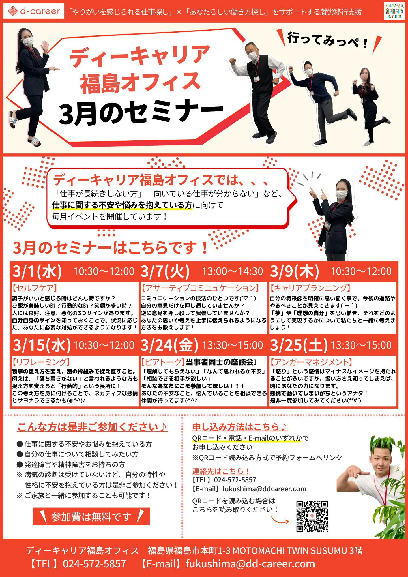 【ディーキャリア福島オフィス】3月24日(金)・25日(土)「3月体験会&イベント【無料】人間関係や仕事のことでお悩みありませんか?」