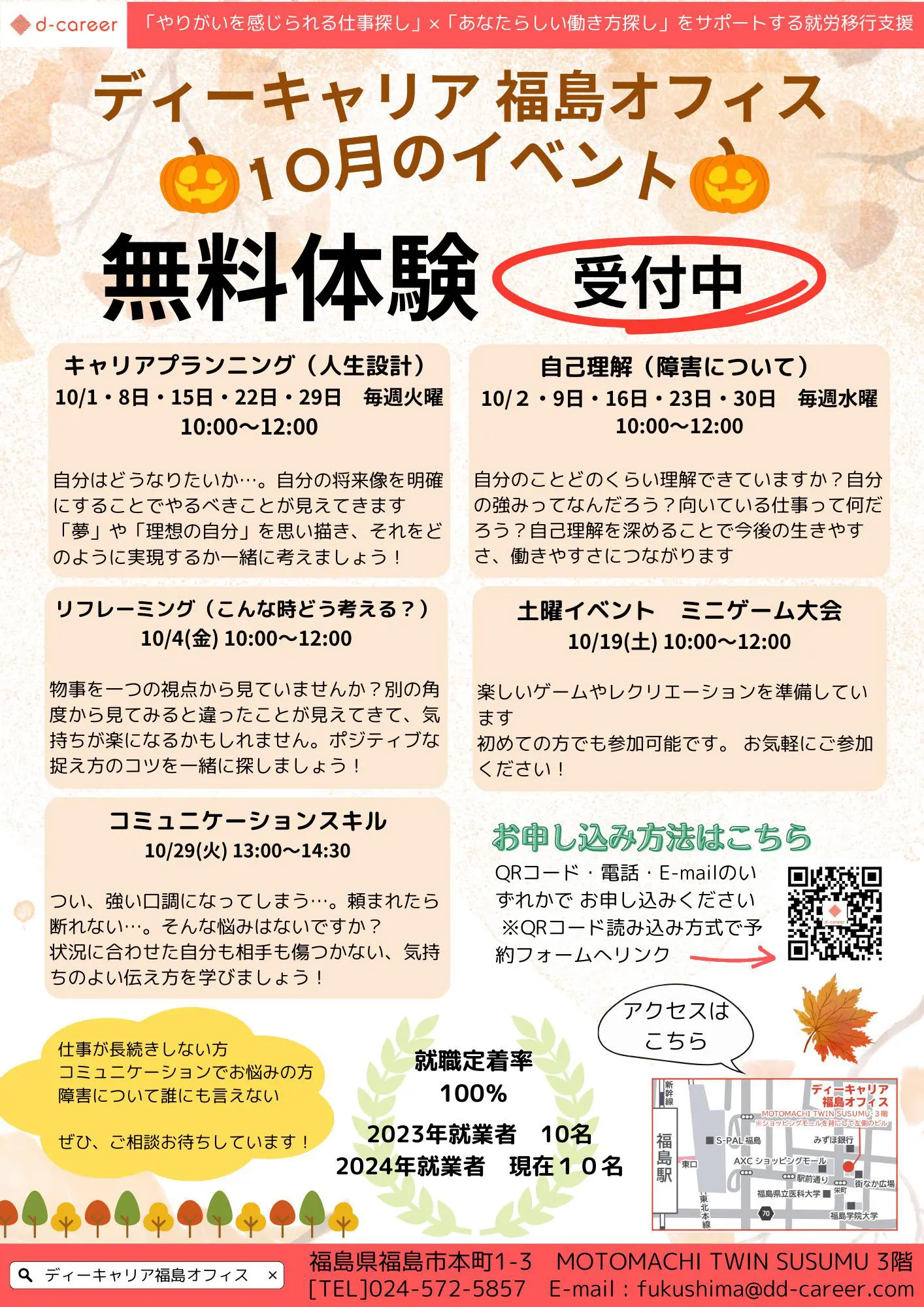 【ディーキャリア福島オフィス】毎週水曜日開催「コミュニケーション・人間関係でお悩みの方に♬(就労移行)」