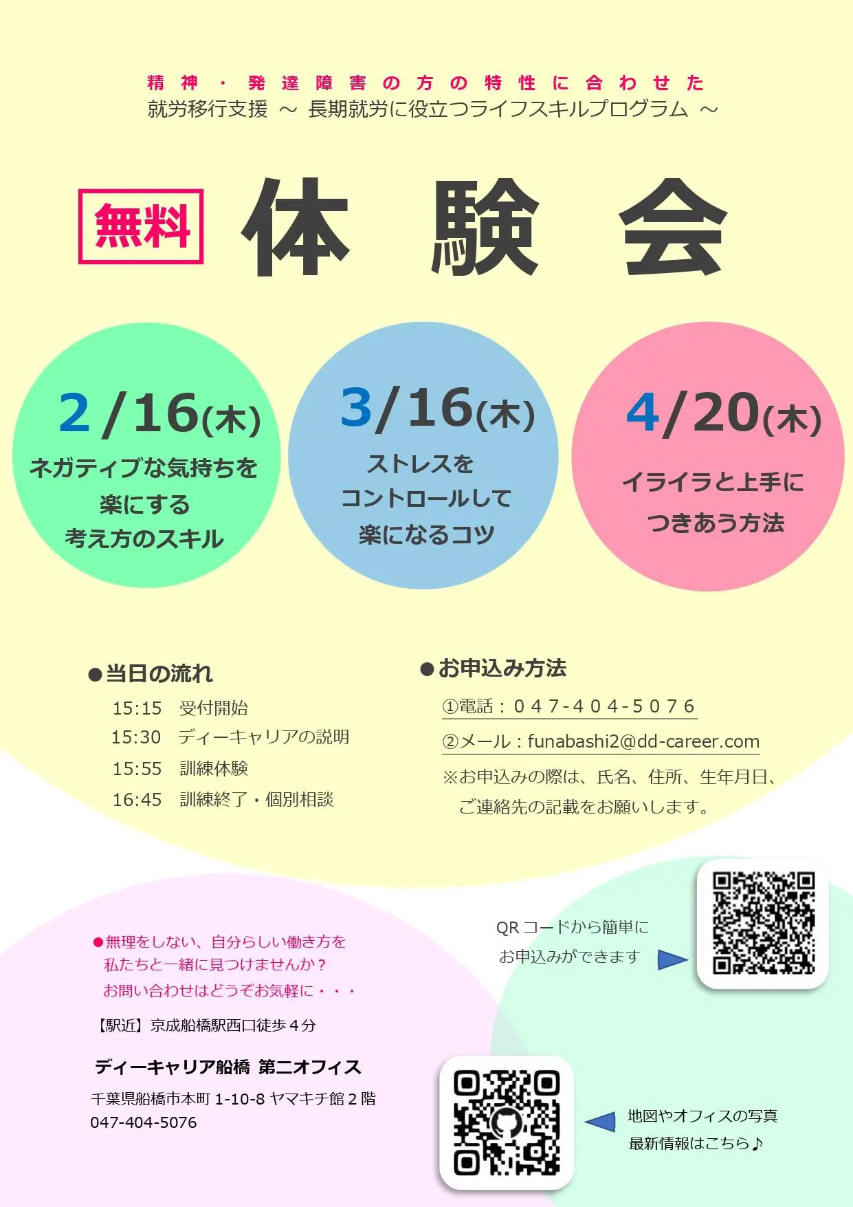 【ディーキャリア船橋第二オフィス】2月16日(木)「体験会「ネガティブな気持ちを楽にする考え方のスキル」」