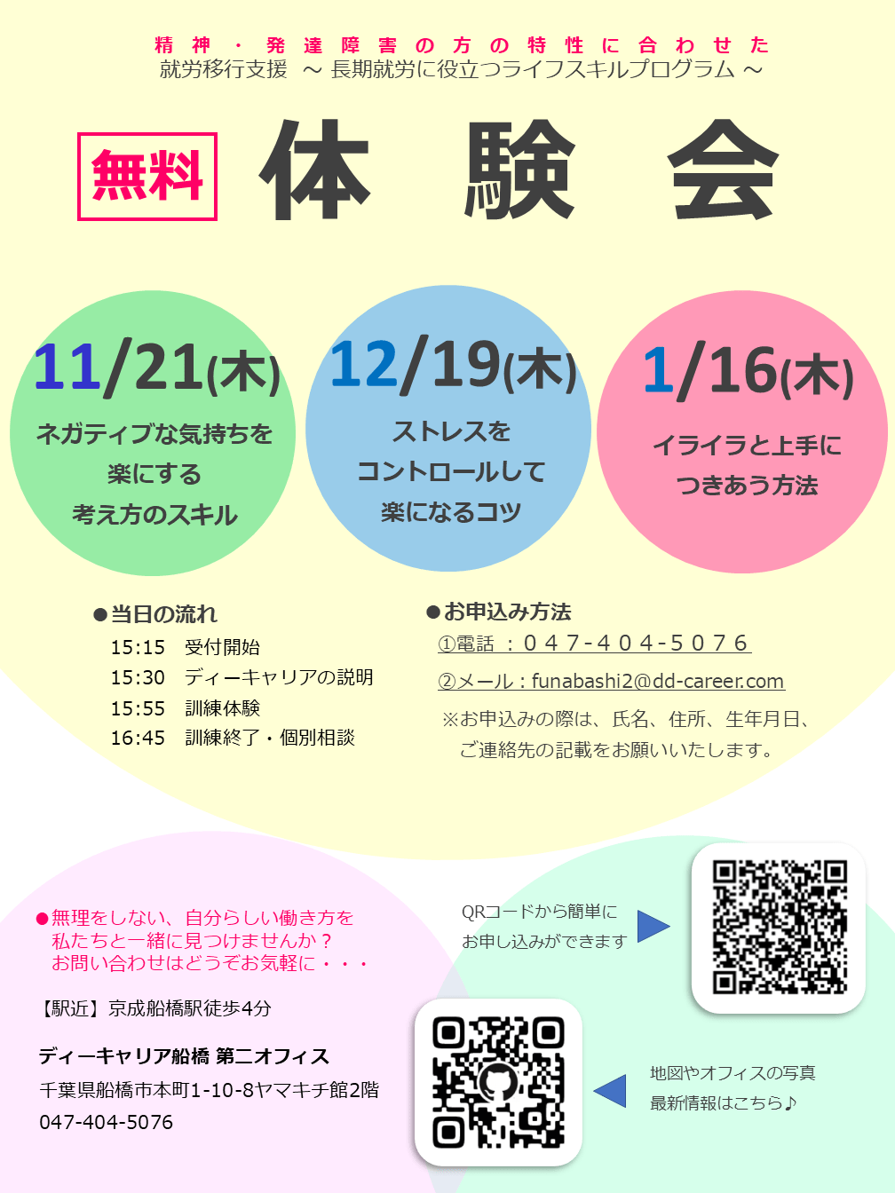 【ディーキャリア船橋第二オフィス】11月21日(木)「体験会「ネガティブな気持ちを楽にする考え方のスキル」」