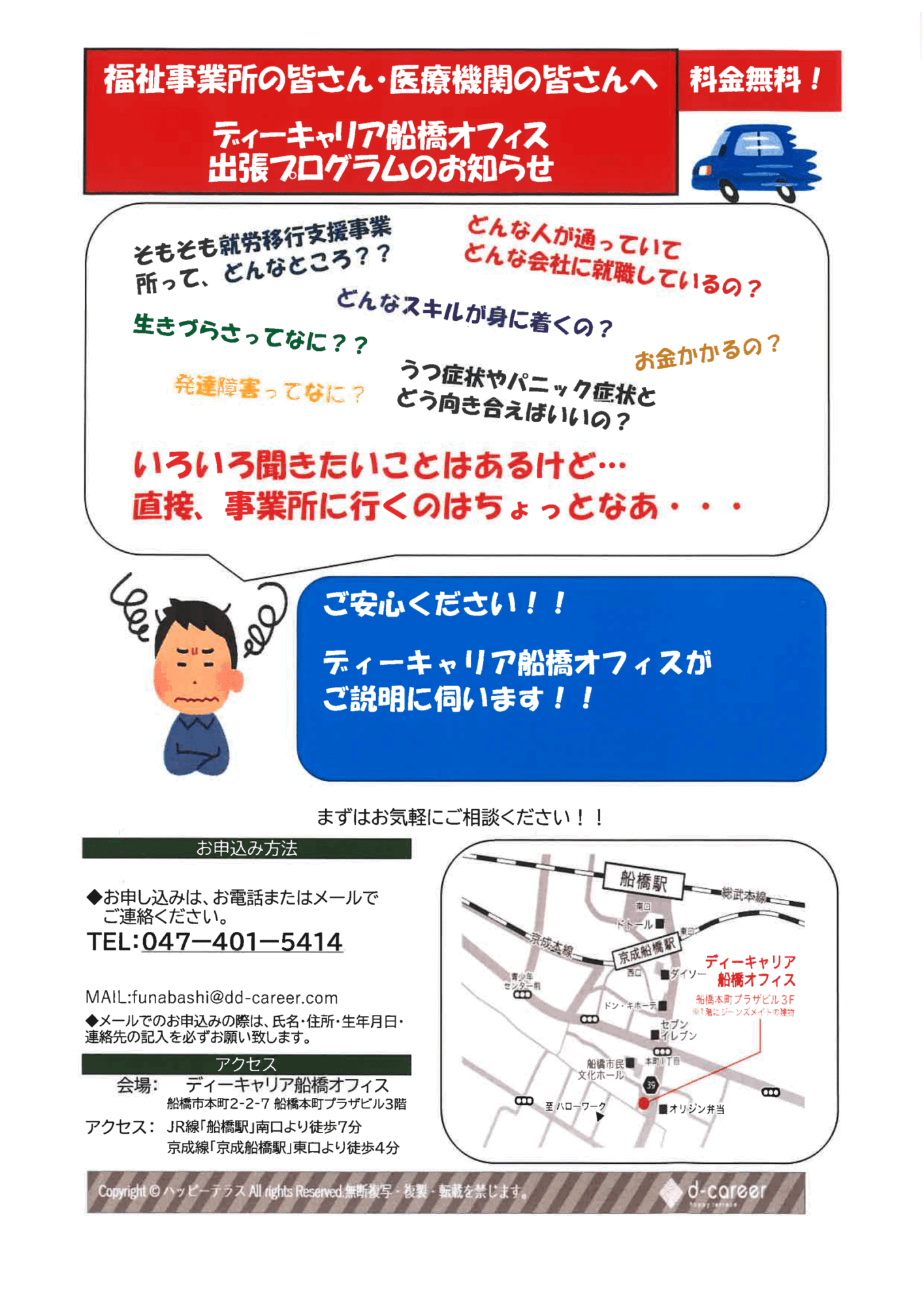 【ディーキャリア船橋オフィス】平日開催「出張プログラムのお知らせ」