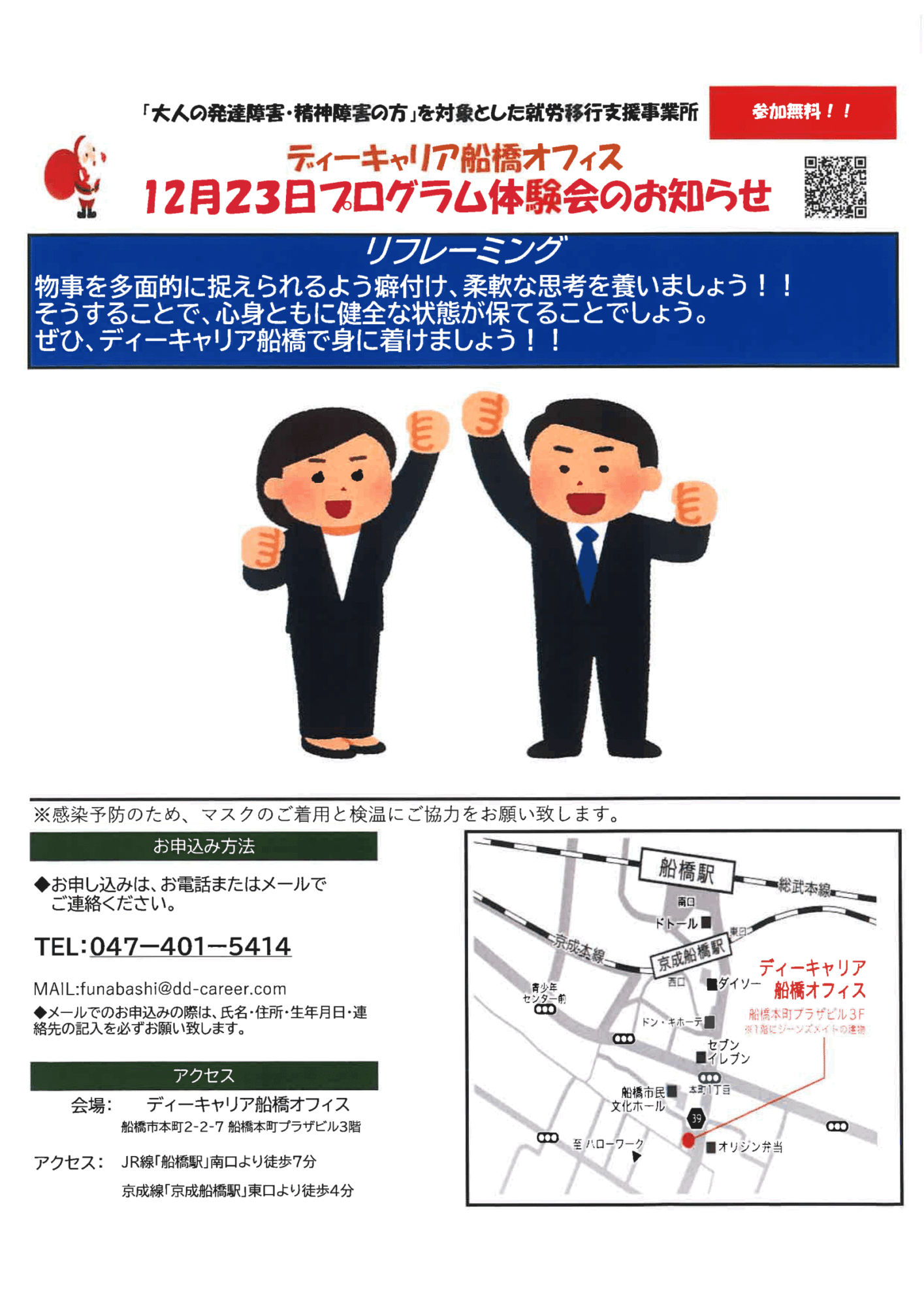 【ディーキャリア船橋オフィス】12月23日(金)「柔軟な思考を養おう!!リフレーミング」