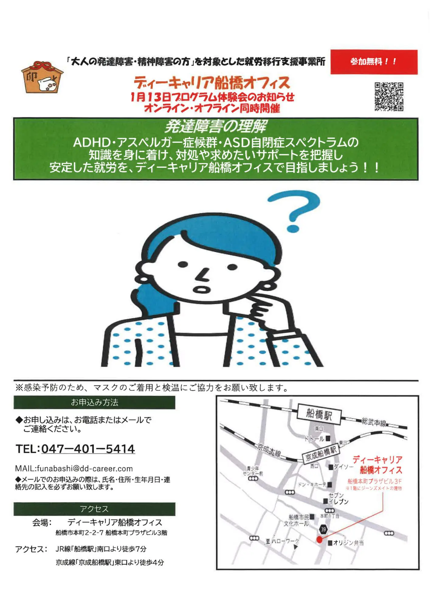 【ディーキャリア船橋オフィス】2023年1月13日(金)「発達障害の理解」