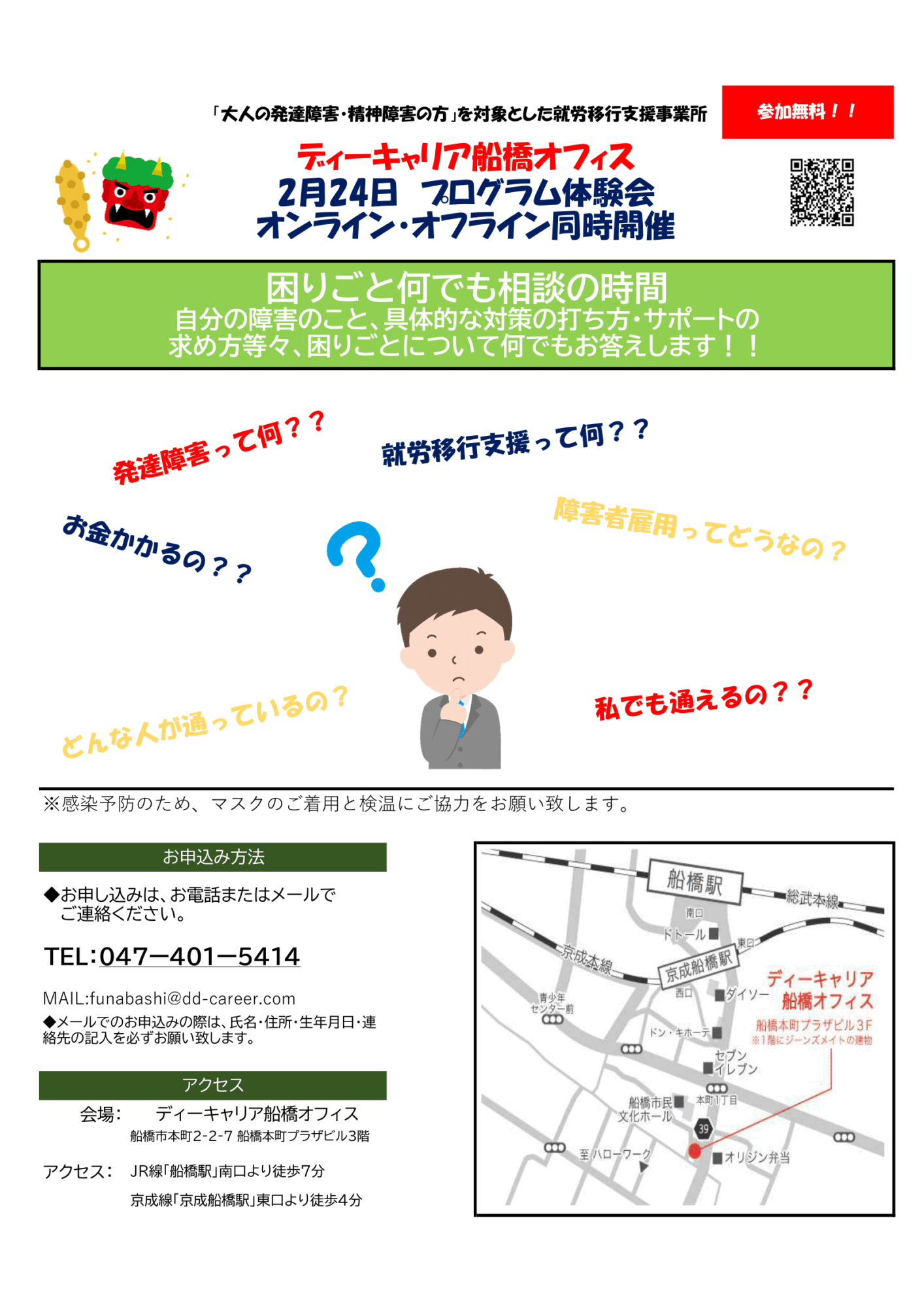 【ディーキャリア船橋オフィス】2月24日(金)「困りごと何でも相談の時間」
