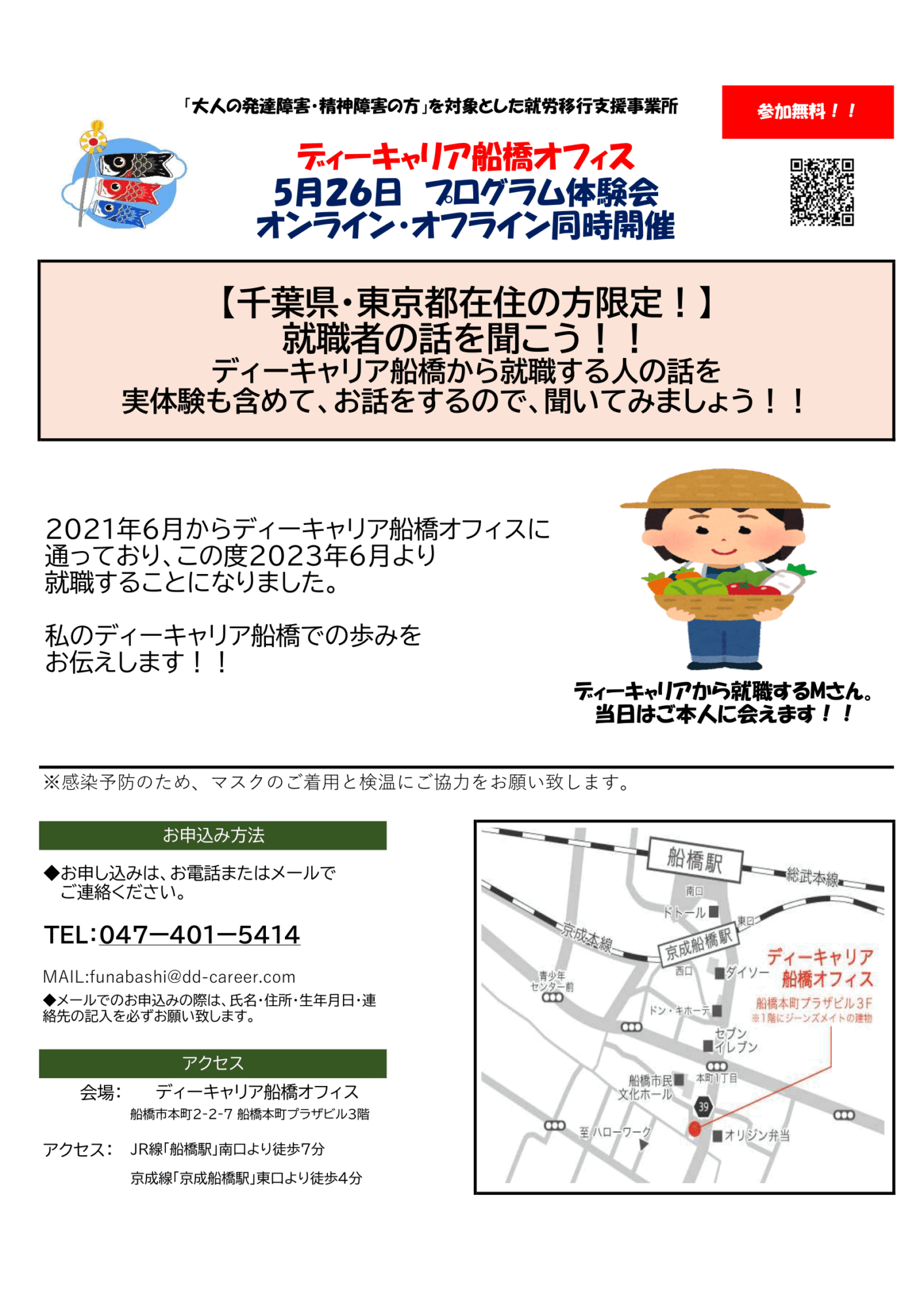 【ディーキャリア船橋オフィス】5月26日(金)「就職者の話を聞いてみよう!!」