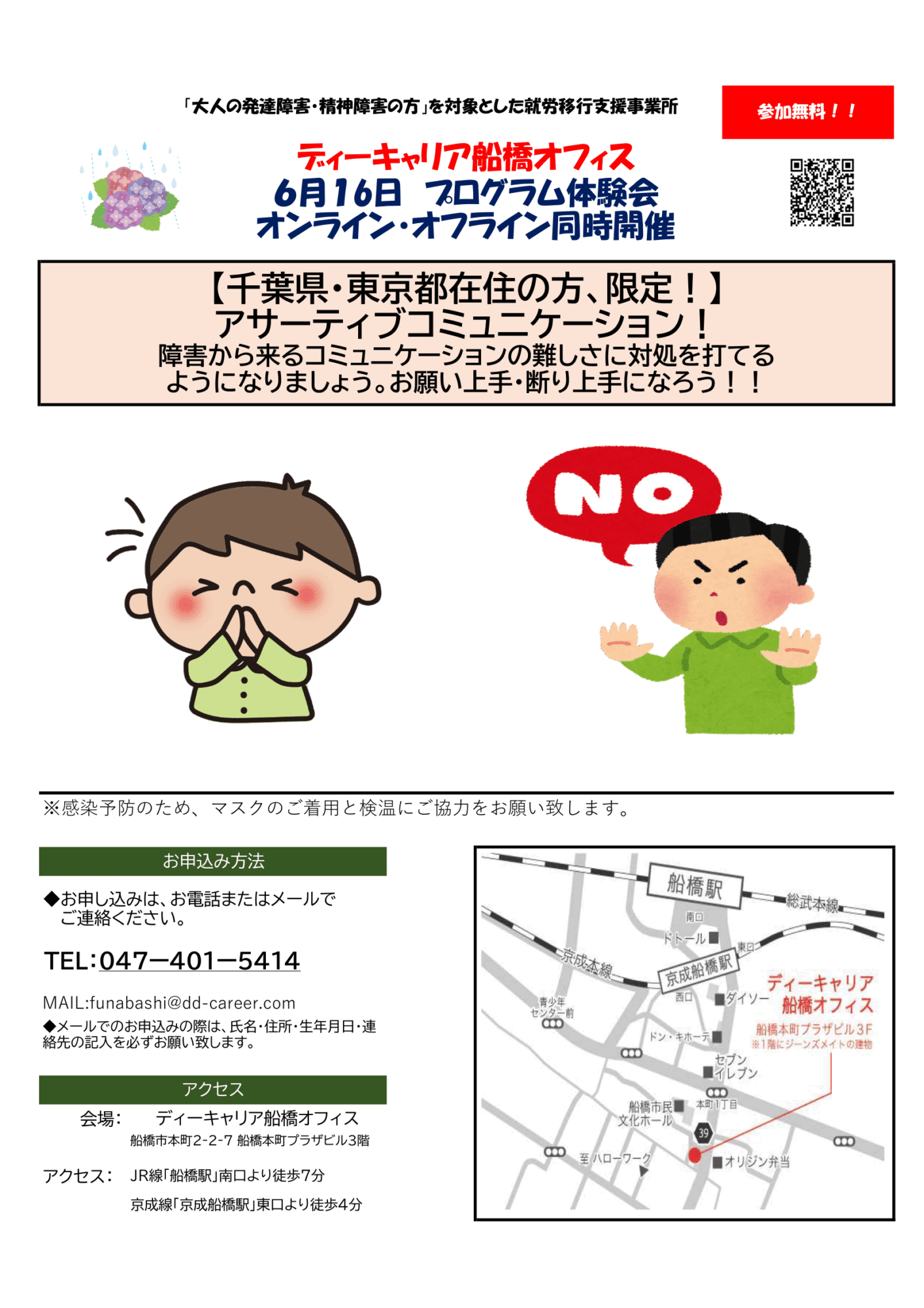 【ディーキャリア船橋オフィス】6月16日(金)「体験会 【千葉県・東京都在住の方、限定!】アサーティブコミュニケーション」