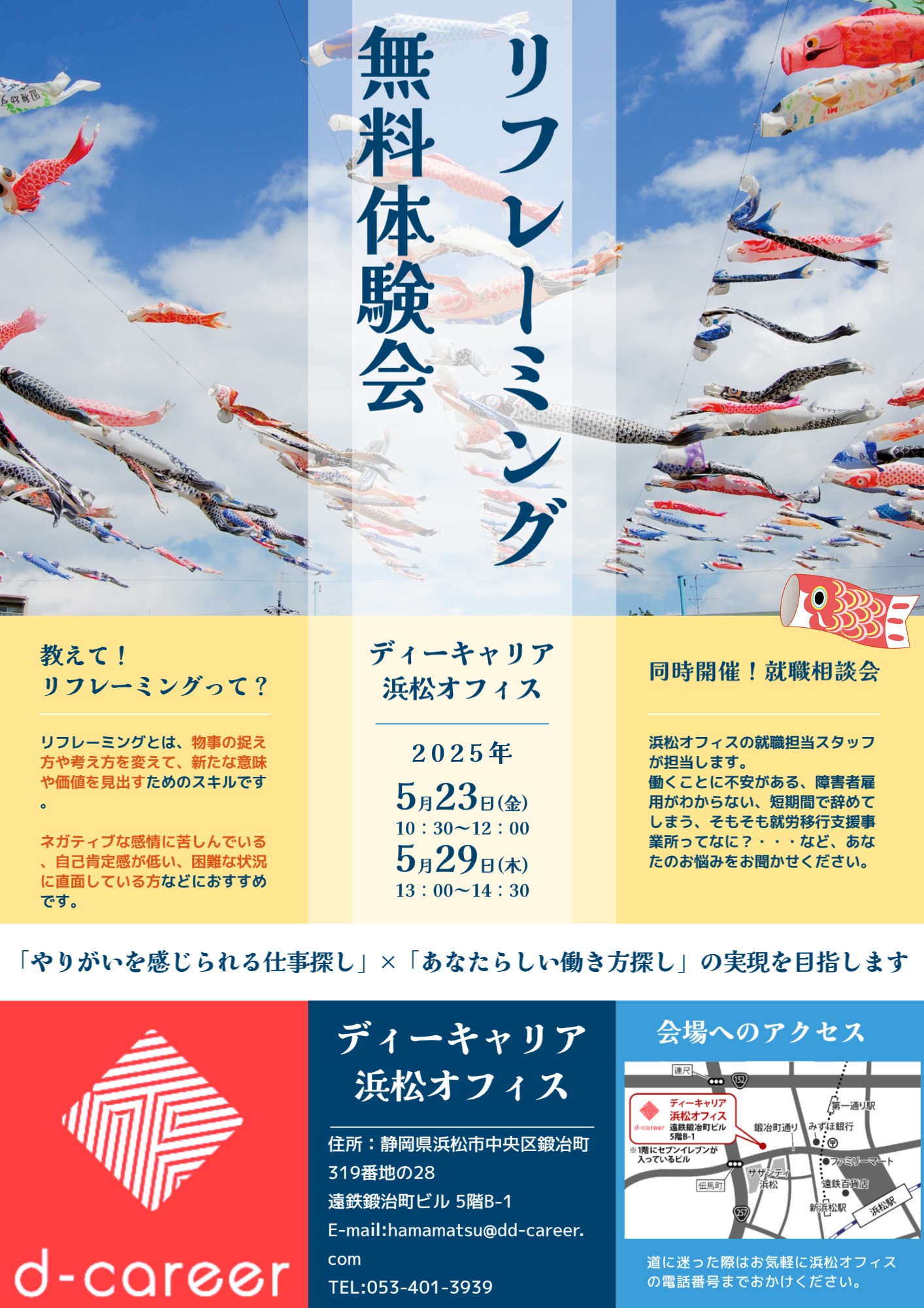 【ディーキャリア浜松オフィス】5月23日(金)・29日(木)「リフレーミング体験会」