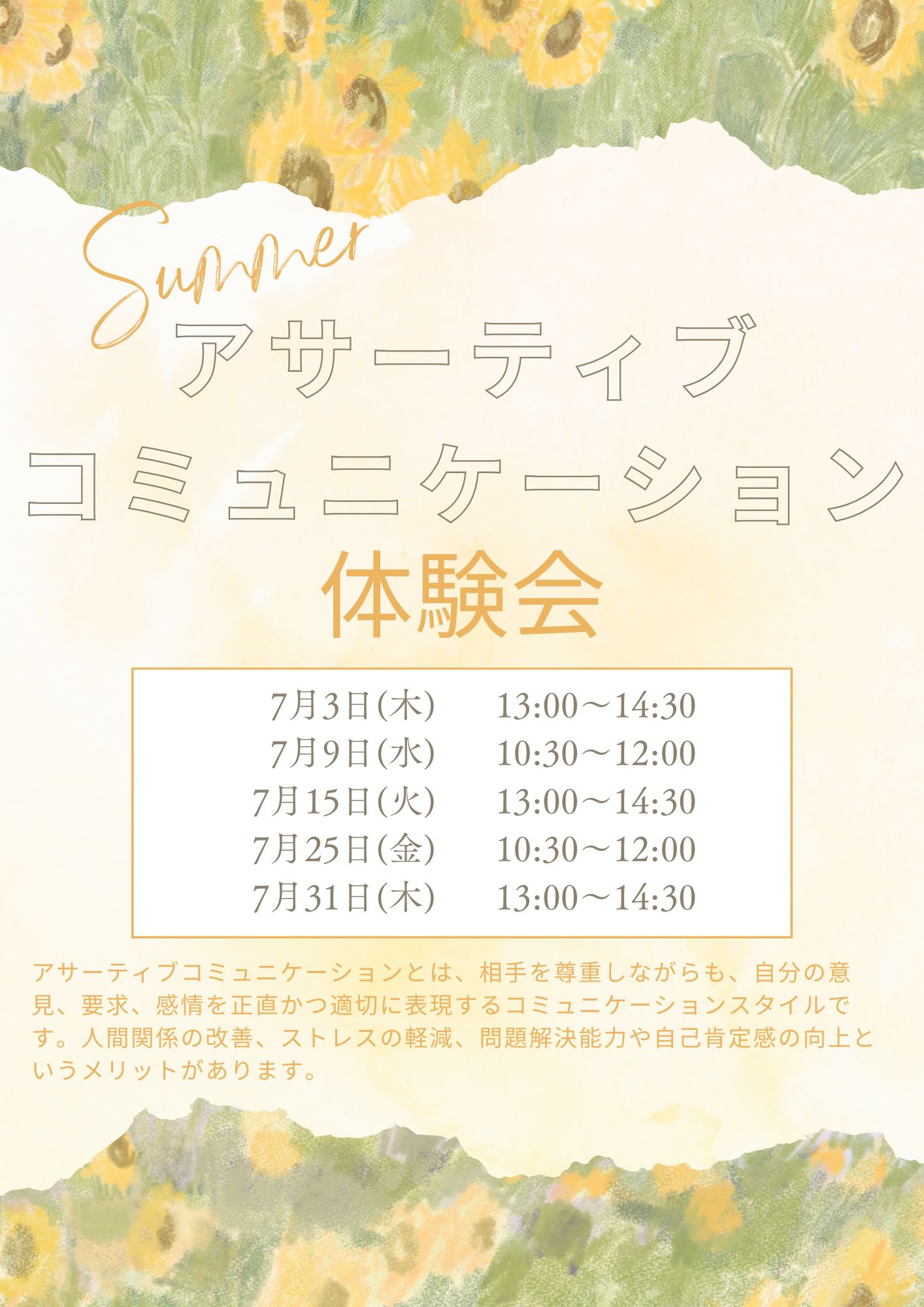 - 07月31日(木) 13:00~14:30 アサーティブコミュニケーション