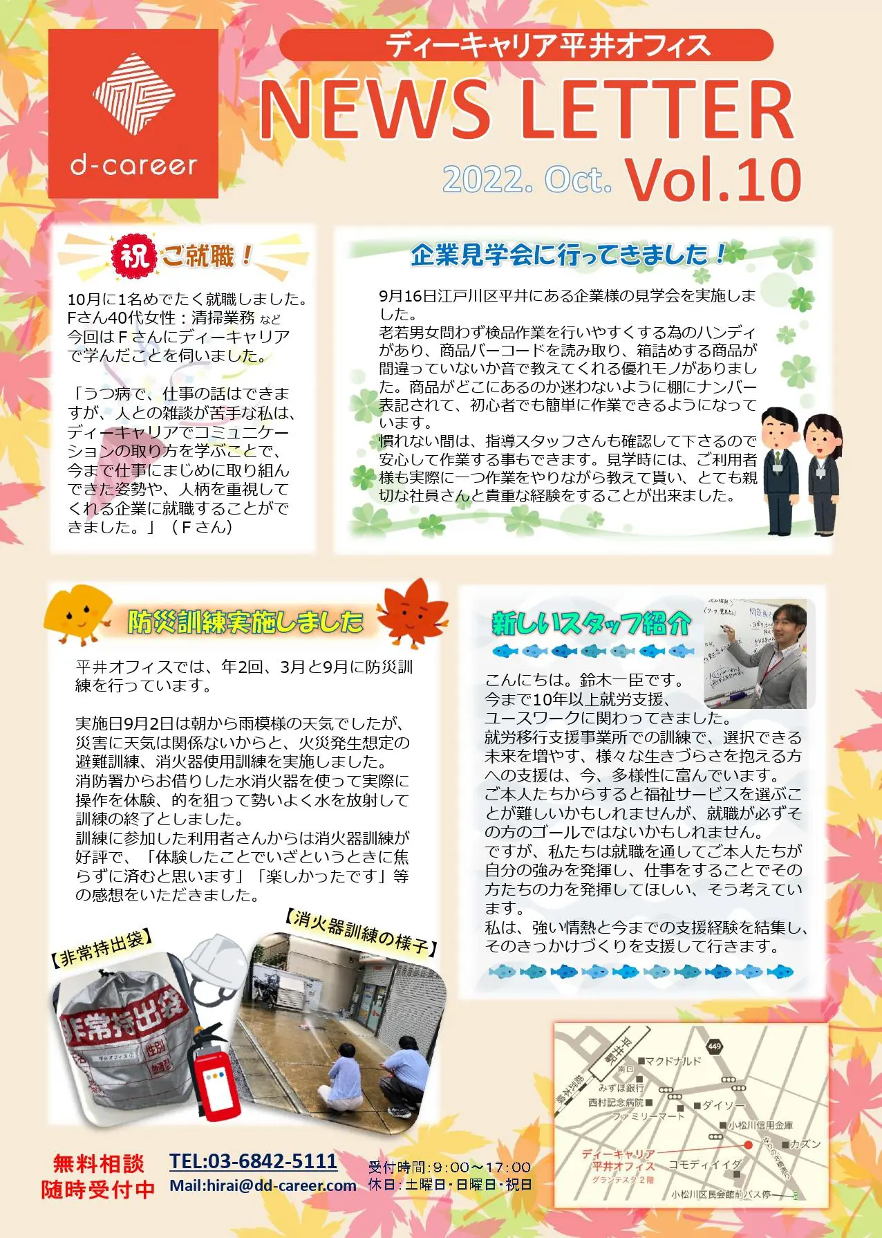 【ディーキャリア平井オフィス】11月8日(火)・17日(木)・12月2日(金)・13日(火)開催「無料体験、随時受付中!(NEWS LETTER Vol.10)」