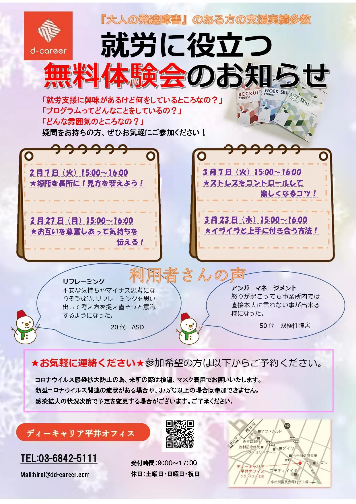 【ディーキャリア平井オフィス】3月7日(火)・23日(木)開催「3月の体験会のお知らせ!」