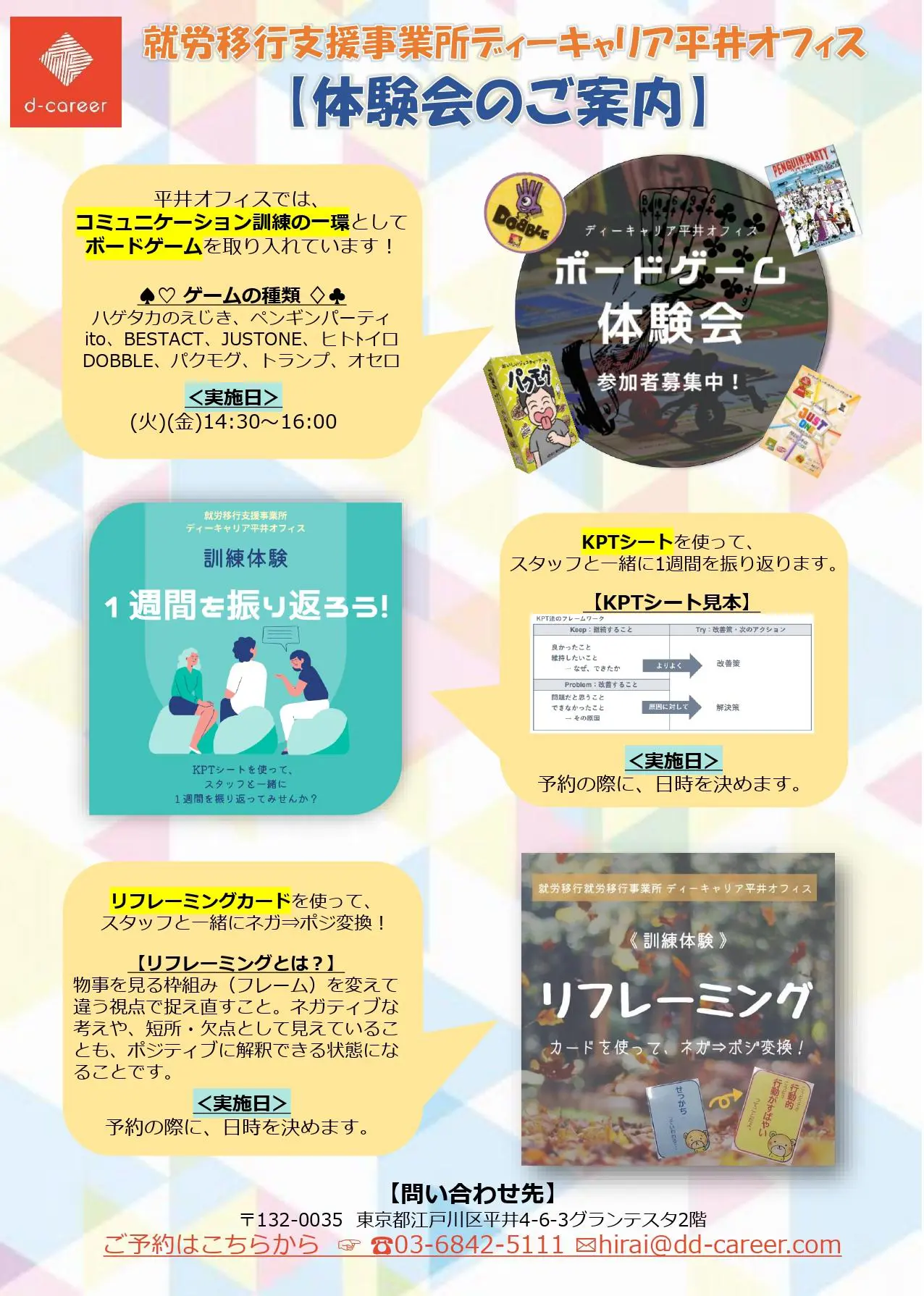 【ディーキャリア平井オフィス】平日開催「選べる体験会のお知らせ!」