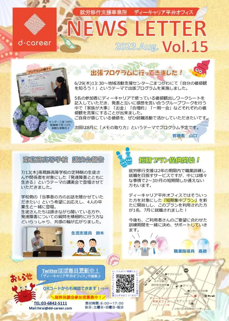 【ディーキャリア平井オフィス】平日開催「オフィス見学・体験受付中!(NEWS LETTER Vol.15)」