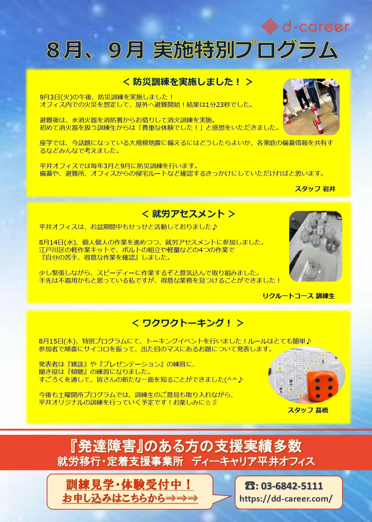 【ディーキャリア平井オフィス】平日開催「無料体験、随時受付中!(NEWS LETTER Vol.21)」