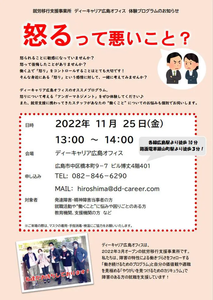 【ディーキャリア広島オフィス】11月25日(金)「怒るって悪いこと?」