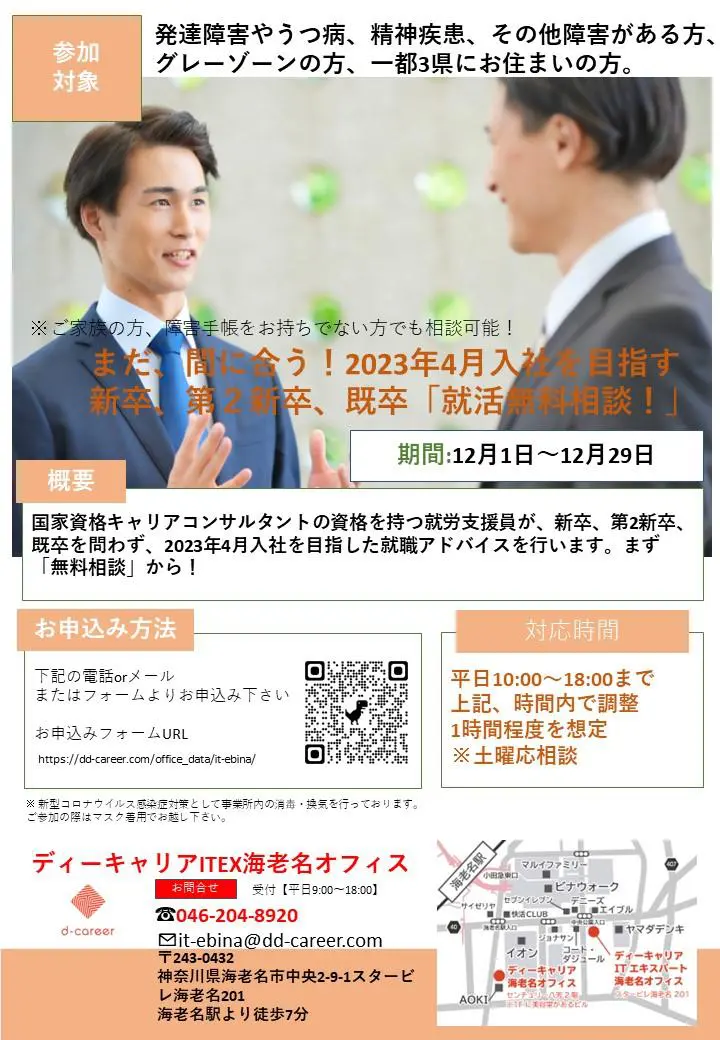 【ディーキャリアITエキスパート海老名オフィス】12月平日開催「就職無料相談会」