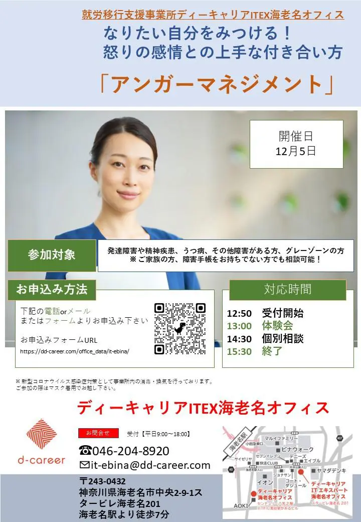 【ディーキャリアITエキスパート海老名オフィス】12月5日(月)「アンガーマネジメント」