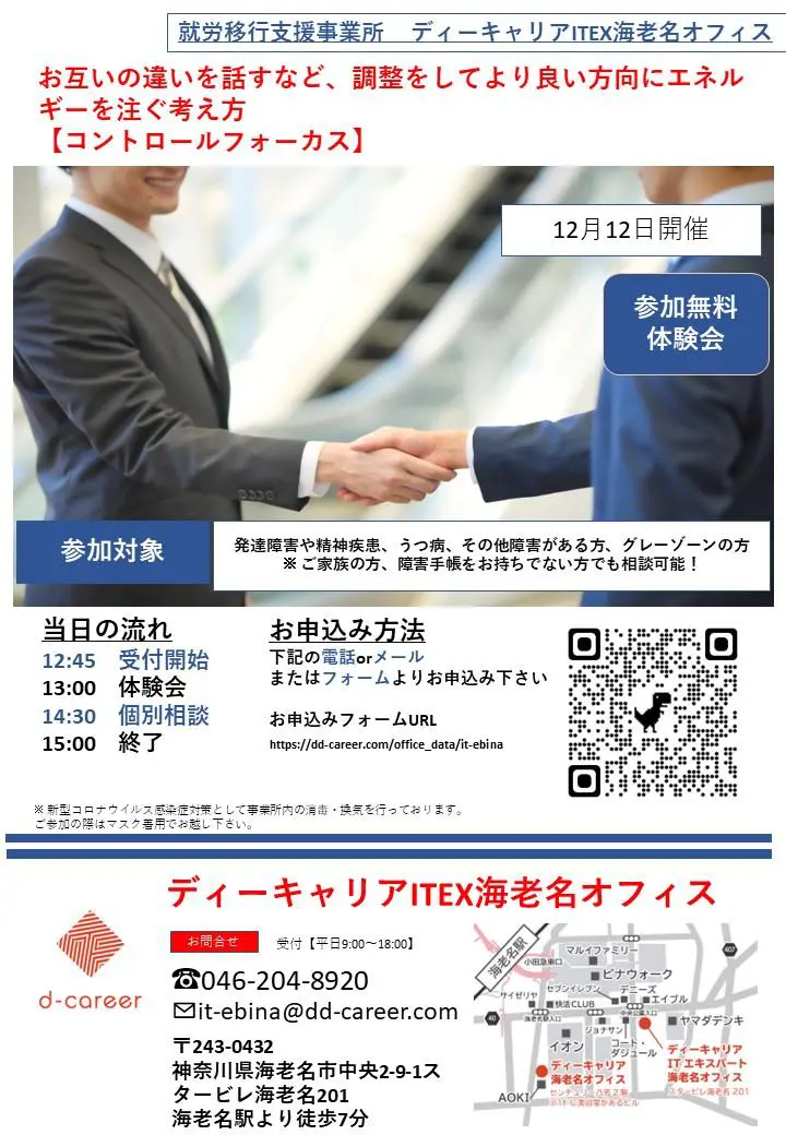 【ディーキャリアITエキスパート海老名オフィス】12月12日(月)「コントロールフォーカス」