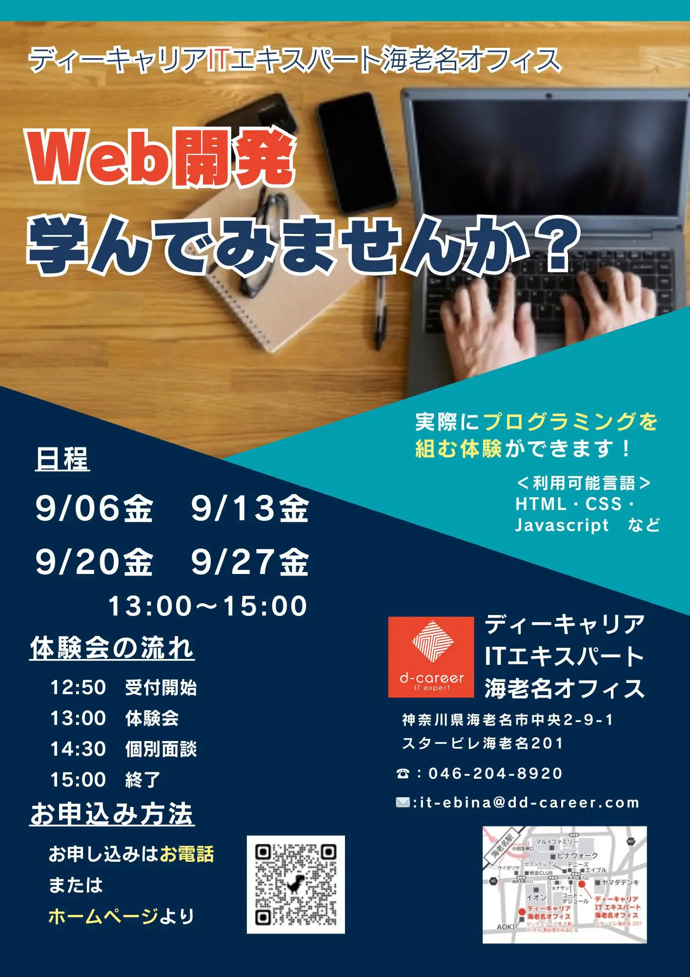 【ディーキャリアITエキスパート海老名オフィス】9月毎週金曜日開催「Web開発について学んでみませんか?」
