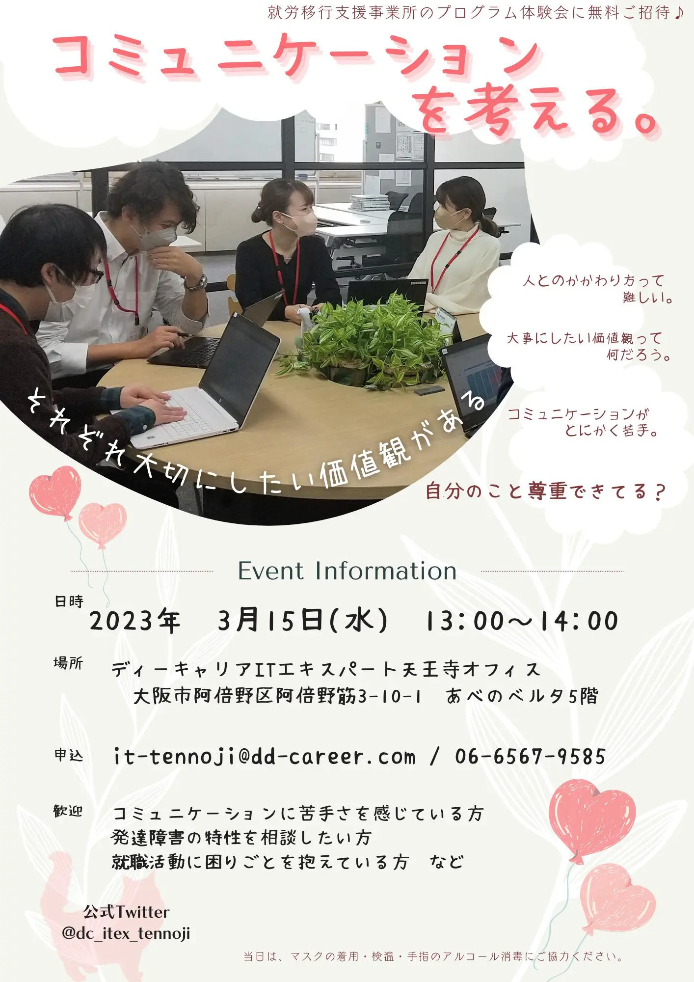 【ディーキャリアITエキスパート天王寺オフィス】3月15日(水)「コミュニケーションを考える」