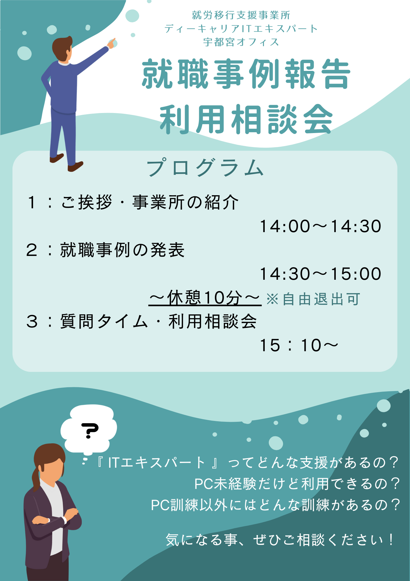 就職事例の報告と利用相談会の機会を設けさせていただきました。