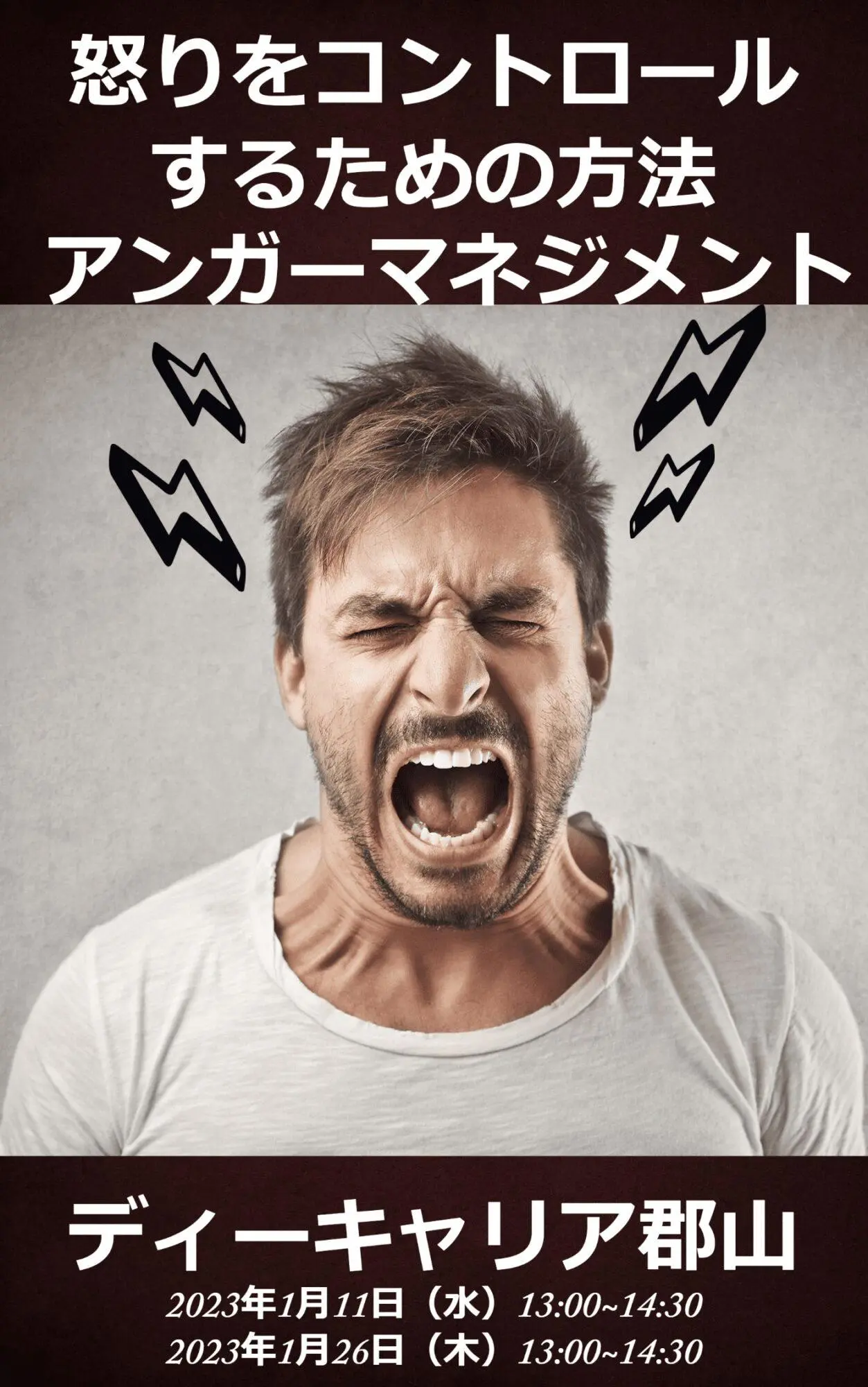 【ディーキャリア郡山オフィス】2023年1月11日(水)・26日(木)「怒りをコントロールするための方法~アンガーマネジメント講座~」