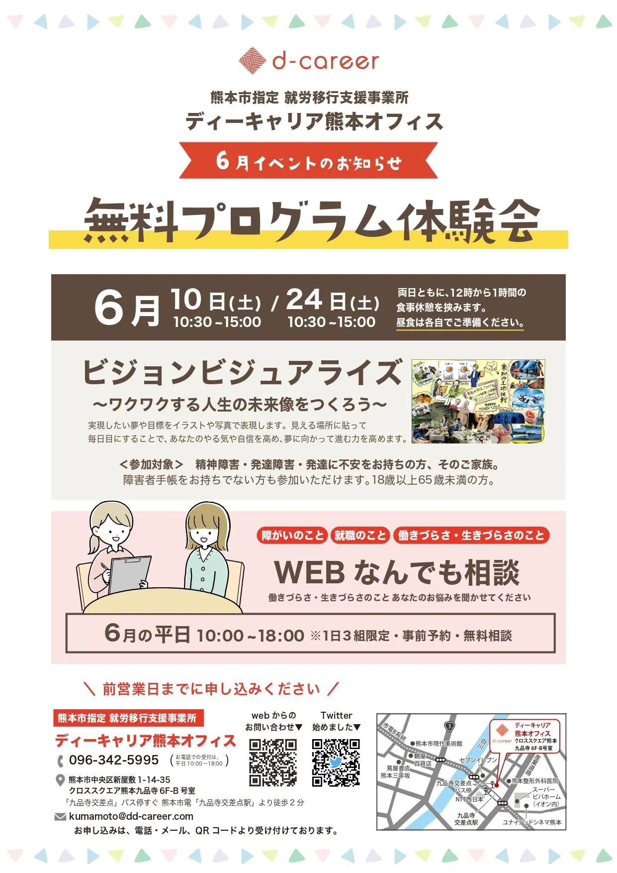 【ディーキャリア熊本オフィス】6月10日(土)・24日(土)「無料プログラム体験会」