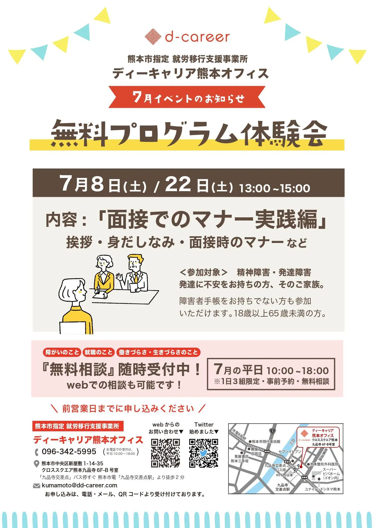 【ディーキャリア熊本オフィス】7月08日(土)・22日(土)「無料プログラム体験会」