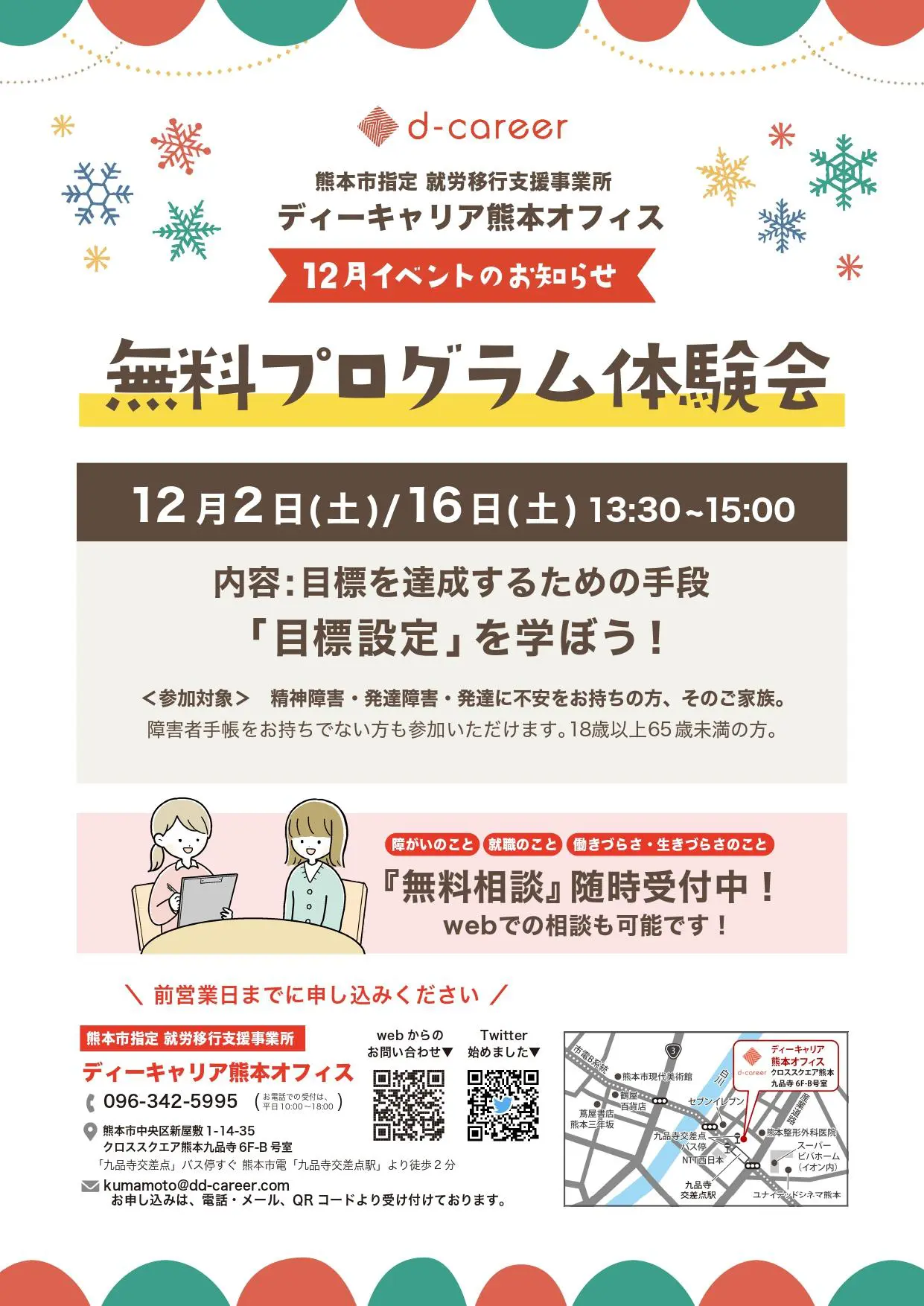 【ディーキャリア熊本オフィス】12月02日(土)・16日(土)「無料プログラム体験会」
