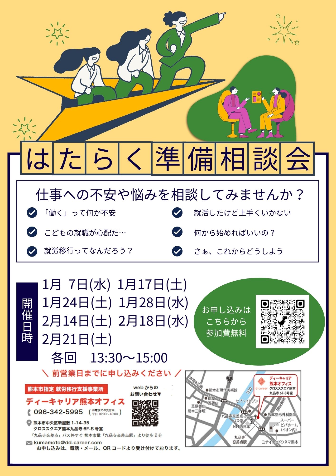 【ディーキャリア熊本オフィス】01月07日(水)・17日(土)・24日(土)・28日(水)「無料相談会『はたらく準備相談会』」