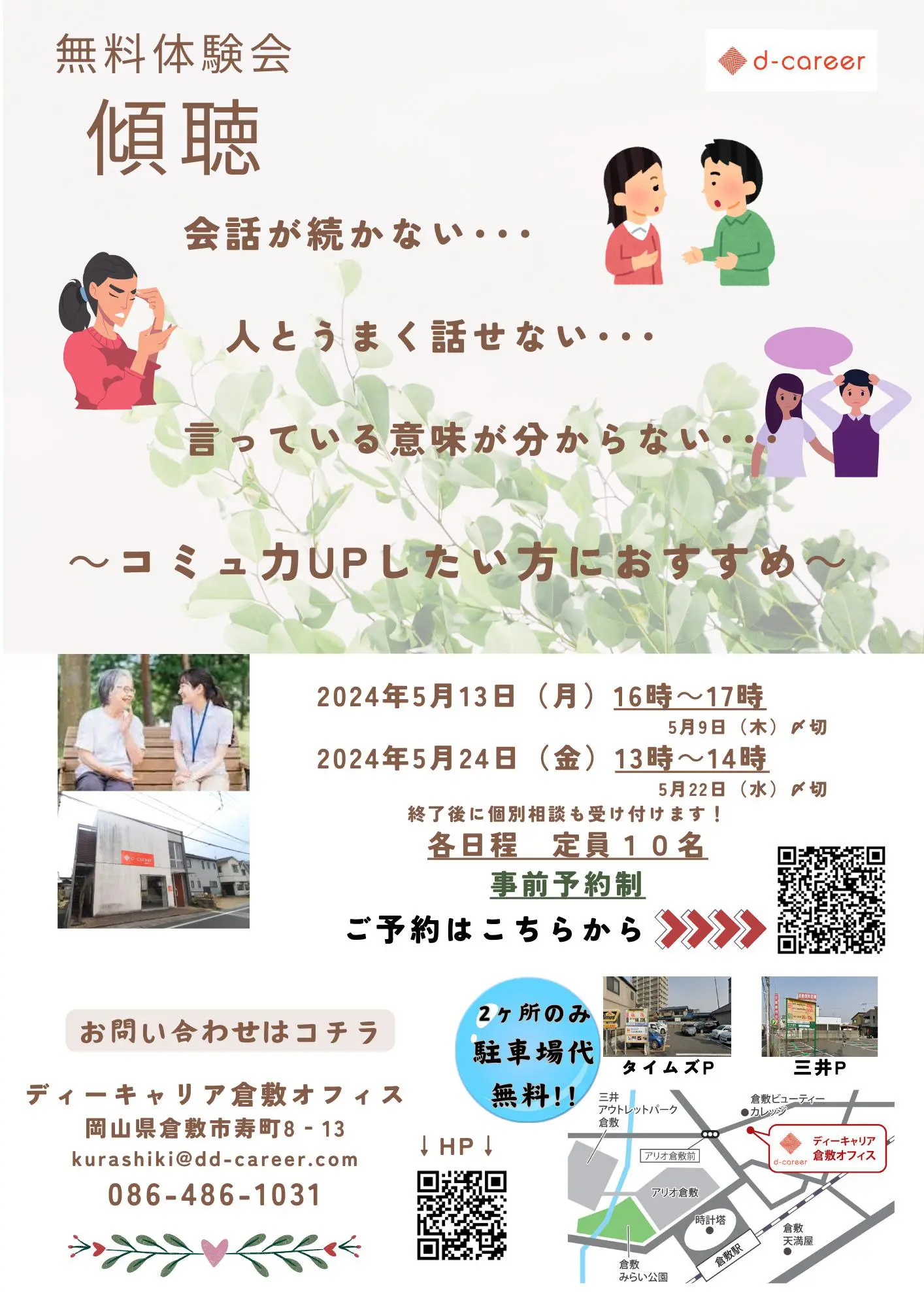 【ディーキャリア倉敷オフィス】5月13日(月)・24日(金)「傾聴 ~コミュ力UPしたい方におすすめ~」