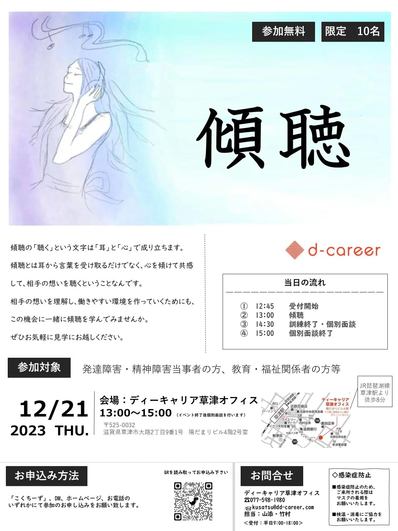 【ディーキャリア草津オフィス】12月21日(木)「傾聴」
