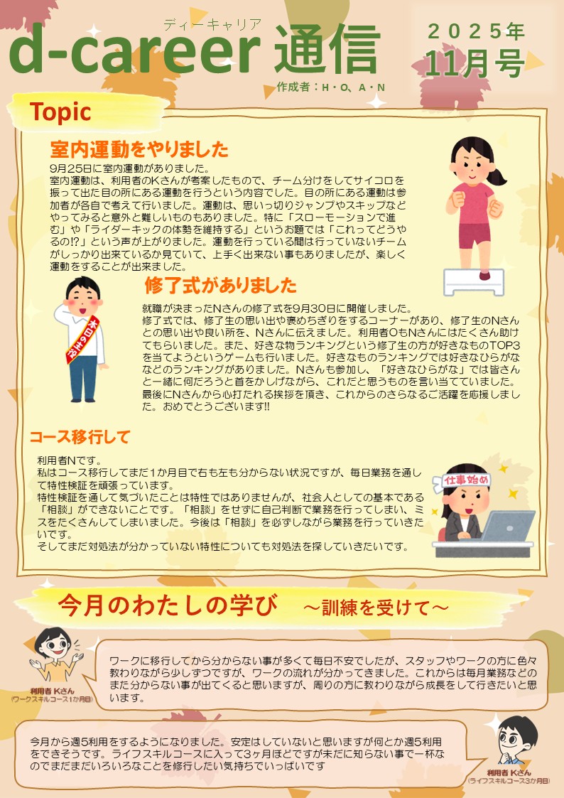 ディーキャリア松本オフィス利用者さん作成の「ディーキャリア通信」をご紹介します。