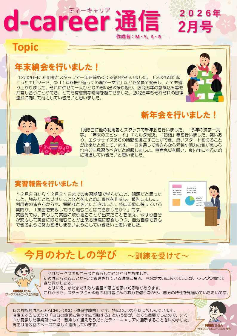 ディーキャリア松本オフィス利用者さん作成の「ディーキャリア通信」をご紹介します。