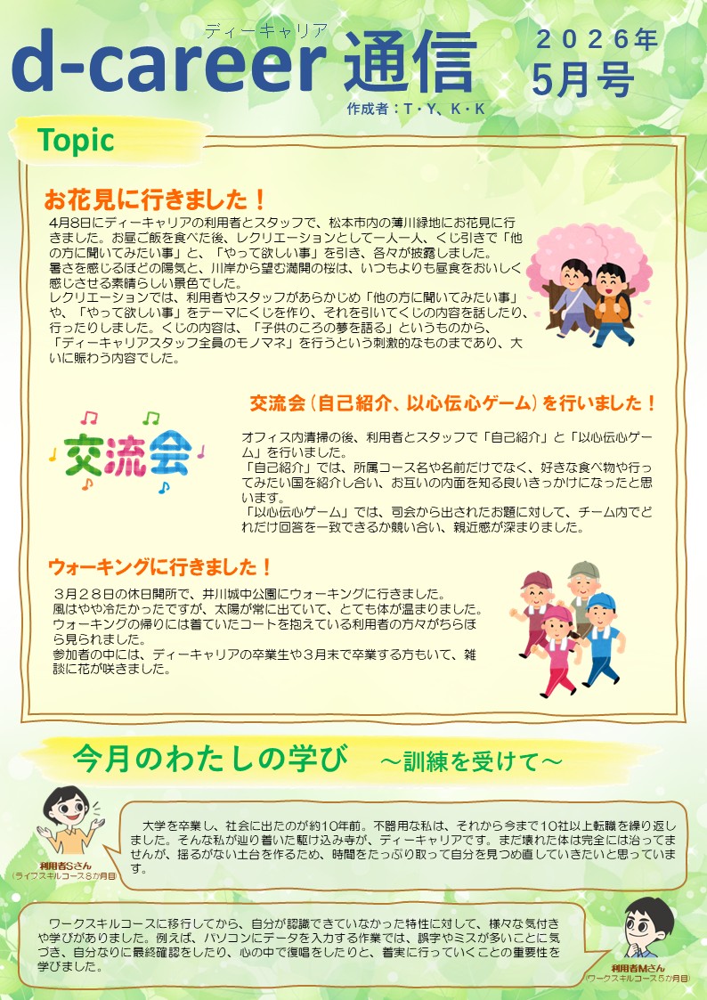 ディーキャリア松本オフィス利用者さん作成の「ディーキャリア通信」をご紹介します。