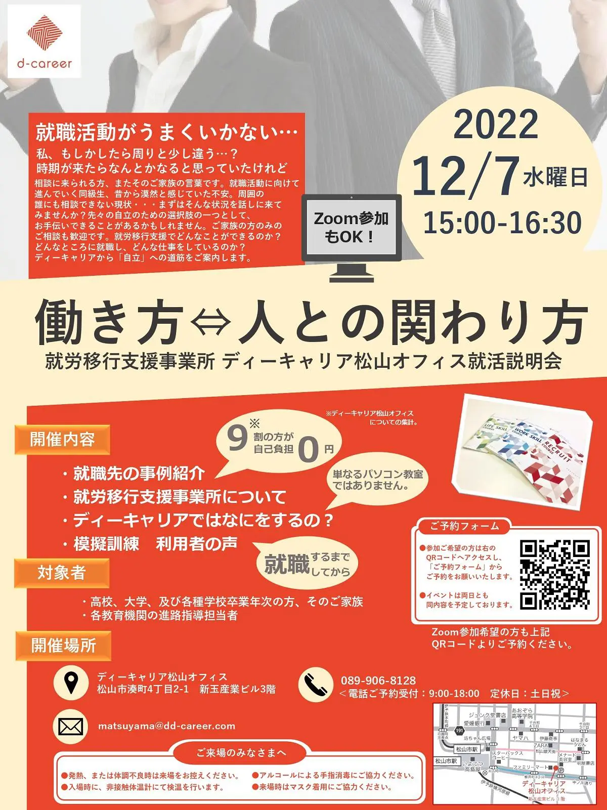 【ディーキャリア松山オフィス】12月7日(水)「働き方⇔人との関わり方 ディーキャリア松山オフィス就活説明会」