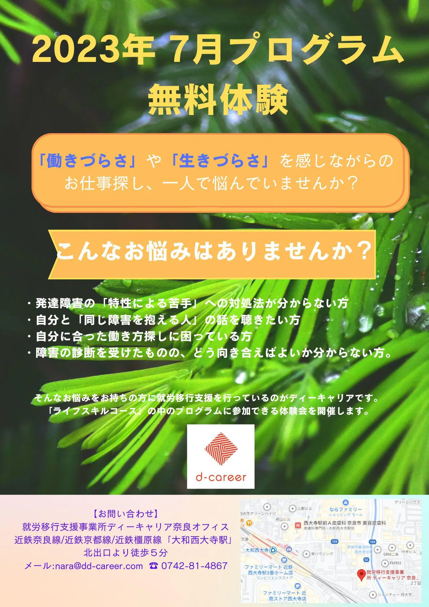 【ディーキャリア奈良オフィス】7月開催「プログラム無料体験会」