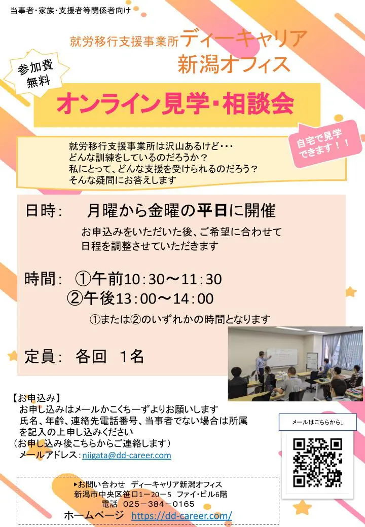 【ディーキャリア新潟オフィス】平日開催「オンライン見学・相談会」