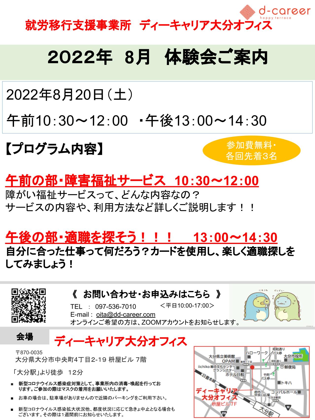 【ディーキャリア大分オフィス】8月20日(土)「障害福祉サービス・適職を探そう!! 体験会」